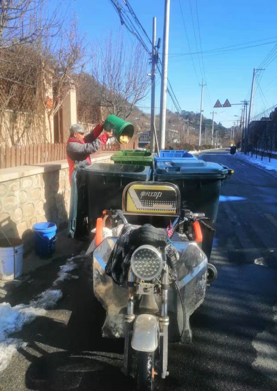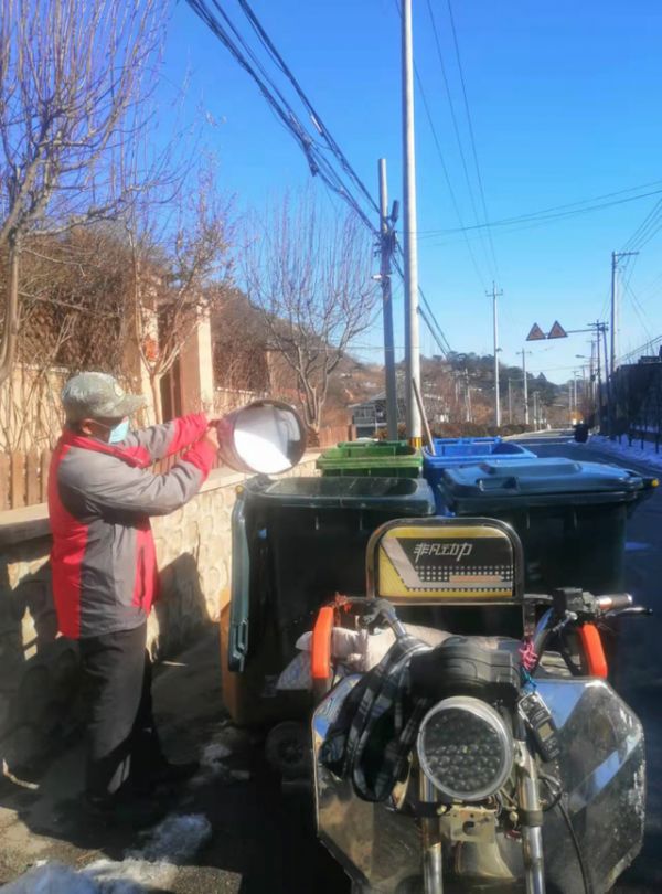 在昌平区市级垃圾分类示范村延寿镇湖门村,早上8点整,垃圾分类普法监督员刘文顺佩戴白色棒球帽、工作卡,身穿印有“垃圾分类 普法监督员”字样马甲,开着收集车准时出现在村里的大街小巷,挨家挨户收集村民提前在家分拣好的垃圾,“每家门前都有三个垃圾桶,放厨余垃圾、其他垃圾和可回收物的,村民从源头分类好,我再进行第一次分类收集。”刘文顺说道。村普法监督员,同时肩负村巡回收集员,村保洁员的职责,在巡回收集垃圾的同时,发现垃圾分类不纯净户,就会敲门入户认真进行指导,再把收集的垃圾运送到村指定的桶站,在分类收集中遇到村民分类不正确的情况,刘文顺会第一时间督促改正:“与之前协助分类不同的是,现在主要以检查居民自主进行垃圾源头分类情况为主,对于分类不正确的,督促现场改正。也会做记录向村委会反馈村民垃圾分类整体情况、诉求。”