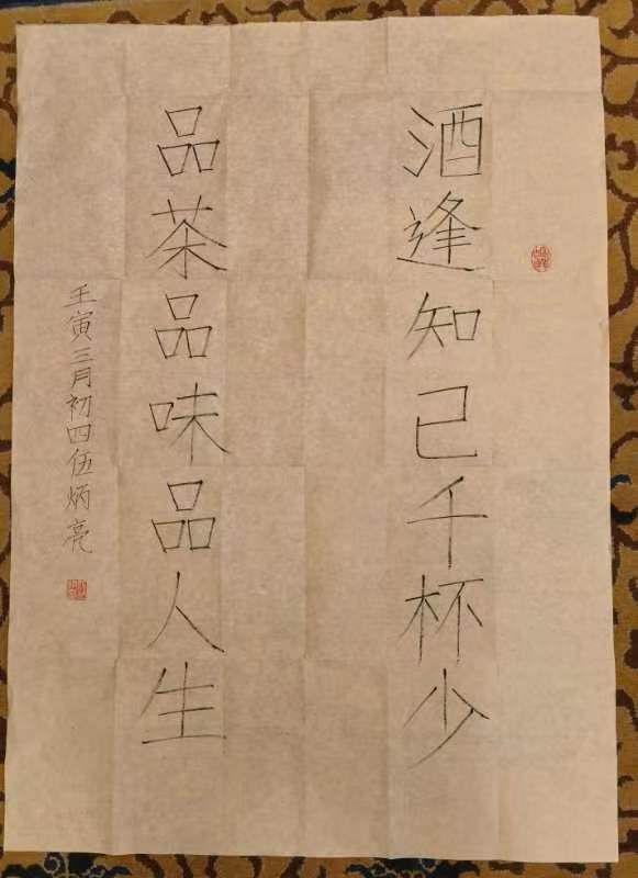 我们今天在这里评论伍炳亮,醉翁之意当然是为中国书法探路,可有用吗?从传统国粹书法到家具推陈出新,支撑伍炳亮的其实不过“本心”,因为坚守本心,所以才能发现万物的“宁静与庄严”、才能实现艺术世界的自我圆满。这恰是伍炳亮先生可贵之处。艺术本无心,是由伍炳亮来为之立心。他数十年在家具制作上的创新和这几年来在瘦金体书法上的摸索过程,就是在为艺术立心的过程—他以艺术家的本心为这个镀金的艺术时代保留了艺术家的尊严。这也是笔者多次撰文,推崇伍炳亮的根本。