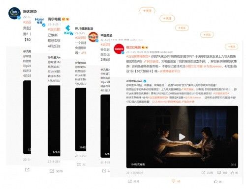 为了打开用户圈层,得到更广泛的品牌传播,九牧联合格兰仕电器、中国劲酒、kus健康生活等数十个行业知名品牌进行趣味互动,致力于打通用户生活场景,吸引不同圈层的关注。并利用KOL自带的粉丝粘性以及高基数流量,进一步实现销售转化。