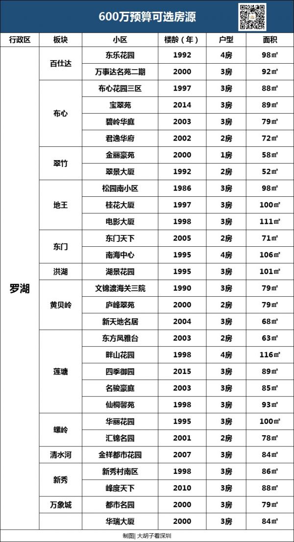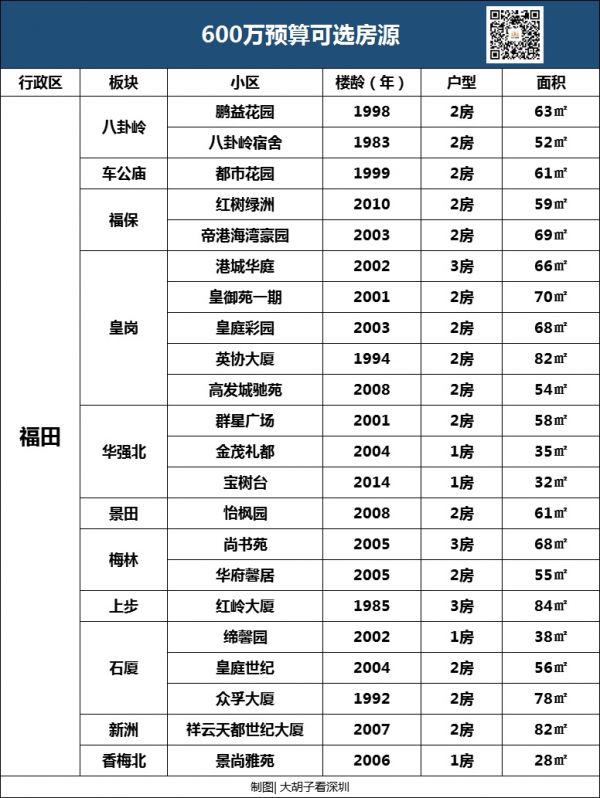 也就是说,只要你有600万预算,基本可以在福田告别老破小。