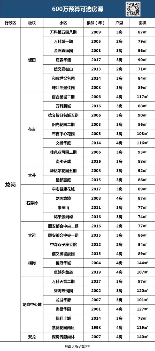 当然,龙岗很大,各个板块的房子怎么选确实很难通过短短几句就说完,如果想要了解龙岗各个板块当下二手房的具体信息以及选筹建议,可以扫描下方二维码加微信咨询。