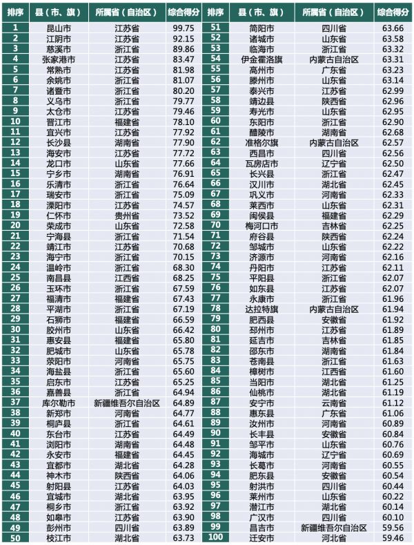治理能力百强县,东部入榜县域数量过半