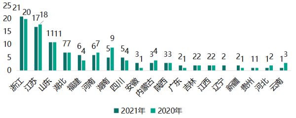 近两年百强县入榜数量分省(区)分布 数据来源:赛迪顾问