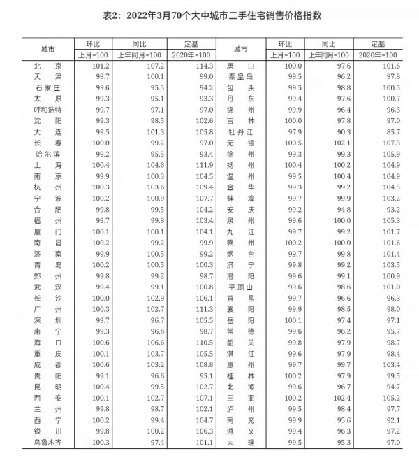 4月15日,国家统计局公布3月份70个大中城市商品住宅销售价格变动情况显示,2022年3月,商品住宅销售价格环比下降城市个数减少,各线城市同比下降或涨幅回落。70个大中城市中,新建商品住宅和二手住宅销售价格环比下降城市分别有38个和45个,比上月分别减少2个和12个。