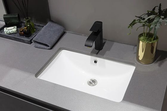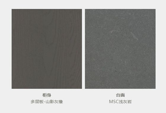 精选浅灰岩石英石台面,能保证更牢固的承重力、耐磨耐刮的同时,做到超薄、美观;搭配简约方形设计的台下盘,表面光滑细腻,时尚感与实用性兼具。