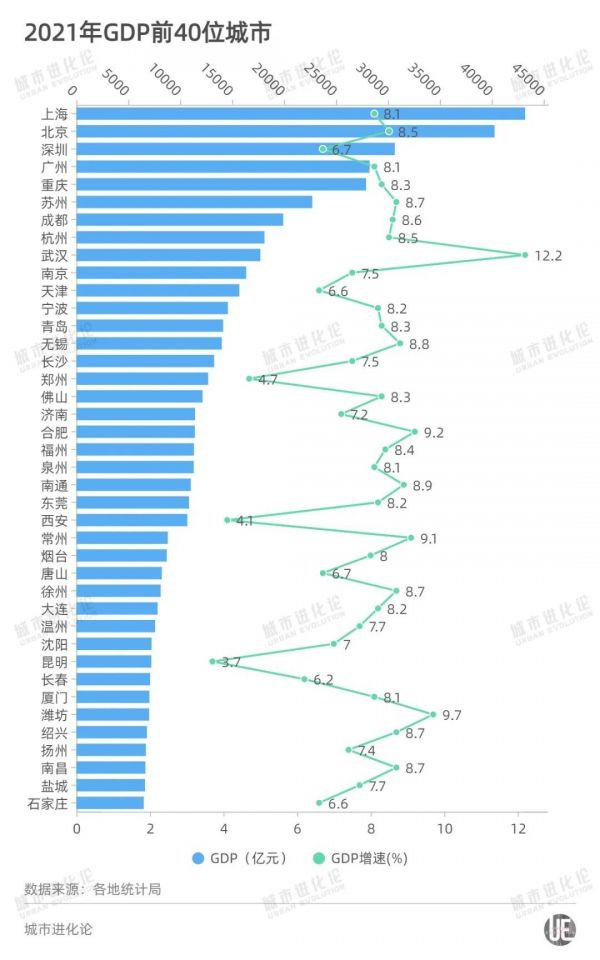 这也拖累了石家庄经济增长。2001年,石家庄 GDP还位列全国第19位,到2021年,其排名已下滑至第40位。