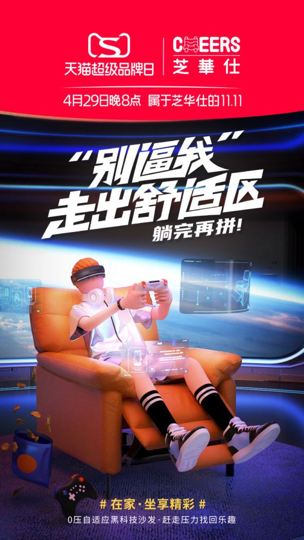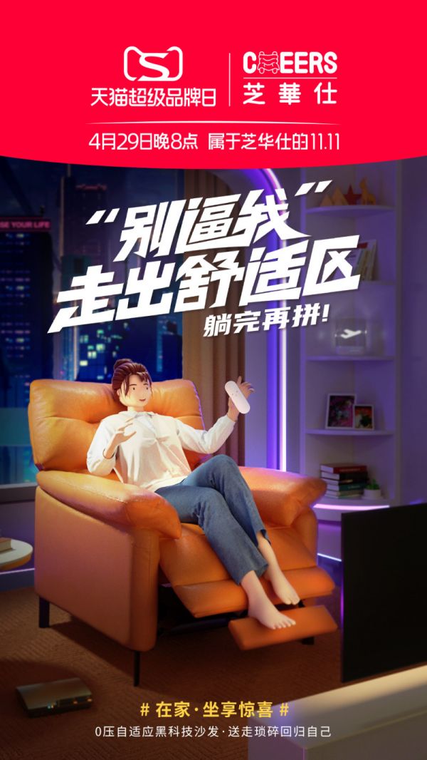 目前,对于更多年轻消费者而言,他们对生活品质有更高的追求,更愿意购买智能化与科技化家居,打造一个专属的生活舒适区,能更好的释放工作生活带来的压力,为了让更多年轻消费者创造属于自己的专属家居生活舒适空间,体验更具科技感、更加人性化的全新舒适空间生活产品,芝华仕将于4.29日晚8点—5.1日,再度联手天猫超级品牌日,以别逼我走出舒适区作为主题,深入了解年轻人需求,构建全新行业销售模式,打破原有“先付后享”消费理念,重磅推出“0元下单,先享后付”的全新消费模式,以创新性思维打破行业规则,创造芝华仕与天猫合作的双赢法则。