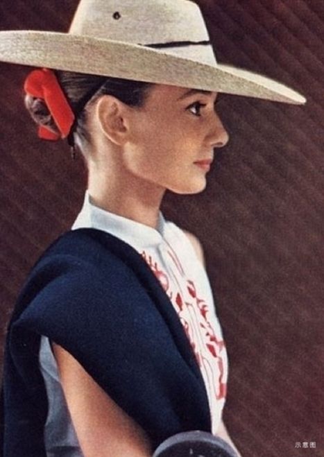 奥黛丽·赫本倚着铁艺的栏杆在露台上唱歌