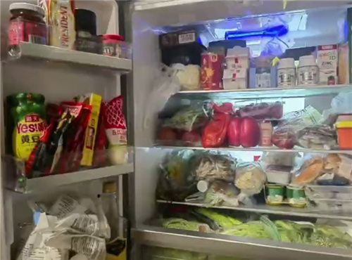 4月27日,张女士在抖音上也发布了最新的动态,视频里可以看到卡萨帝冰箱里依旧囤货满满,不过张女士告诉记者,目前上海市的食材团购越来越方便了,所以现在安全感满满,不过有备无患也还是很重要。