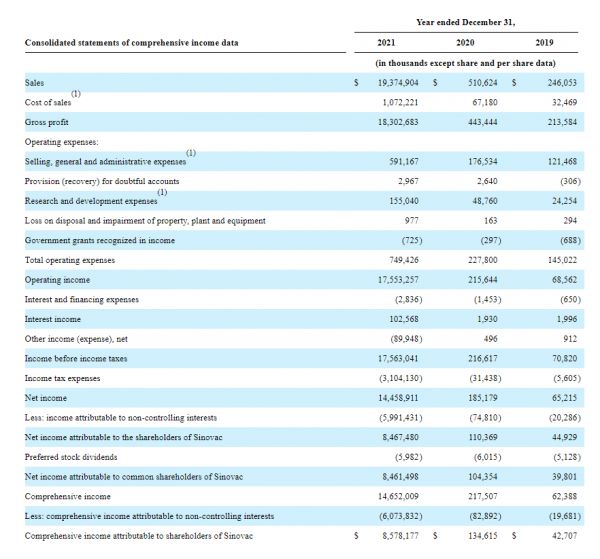 对于业绩暴增,科兴生物称,主要得益于新冠疫苗CoronaVac的销售。