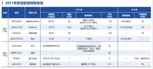 从全国来看,已有7款新冠疫苗产品获批上市,其所属单位分别是国药中生武汉所、北京所,科兴生物,智飞生物(300122),康希诺,康泰生物(300601)和中国医学科学院医学生物学研究所。根据华创证券统计,2021年,科兴、国药、智飞生物、康希诺产能分别为20亿剂、50亿剂、5亿剂和4~5亿剂。