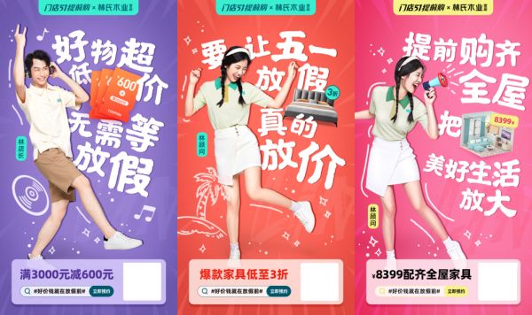 扎根互联网十五载,林氏木业深知流量走势的奥秘。在多个家具品牌促销活动密集的五一假期,如何才能使自身品牌脱颖而出,吸引用户到店选购,并实现有效转化。林氏木业给出了自己的答案:深刻洞察年轻用户精打细算,追求美好精置生活的态度主张,将所有的目标以及营销动作前置化,提前一步影响和抢占用户的心智。通过多内容、多渠道、多形式打造强氛围,高频次创意内容深度链接用户,同时借力平台资源精准留资,蓄水转化,形成营销闭环,促进客流到店。自4月18日起,林氏木业便打出一套“好价钱在放假前”的营销“组合拳”,不仅抢先发布“放价通知”海报,率先官宣林氏木业门店五一提前“放价”,还发起#五一放价通知#话题讨论,吸引了大批用户关注;值得一提的是,4月22日,林氏木业发布“五一放价”主题说唱TVC,以年轻人的视角,趣味演绎门店提前“放价”的态度,获得超600万次播放。当日,林氏木业开展全国门店联合直播,邀请总裁亲临直播间为用户介绍好物,送出万元家电壕礼,并为客户提供购置家具的千万让利。直播期间,总观看数量超11万人次,直播互动超16万,充分赋能线下业绩。