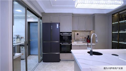 而此次卡萨帝推出的新一代厨房三件套,就对症解决了这两大难题。套系中的冰箱、烤箱、洗碗机既可独立摆放,也可嵌入橱柜。冰箱更是通过创新底部前置散热科技和铰链技术,可以做到0cm嵌入橱柜依旧开门自由,消除了传统冰箱需要左右预留2-10cm散热缝的顾虑。碰到橱柜尺寸不够、水电走线不合适的情况,卡萨帝七星级服务团队还能提供场景化局改服务,确保无论是新装房还是老房子都能安装使用。