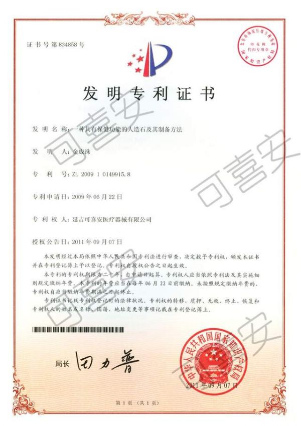 截止到2020年8月,可喜安共获得3项发明专利、22项实用新型专利、8项外观设计专利,已注册29类147种相关商标。目前,数百家可喜安健康生活馆遍布全国各地,服务大众健康。其中可喜安“保健石发明专利”是可喜安产品优势的有力支撑。