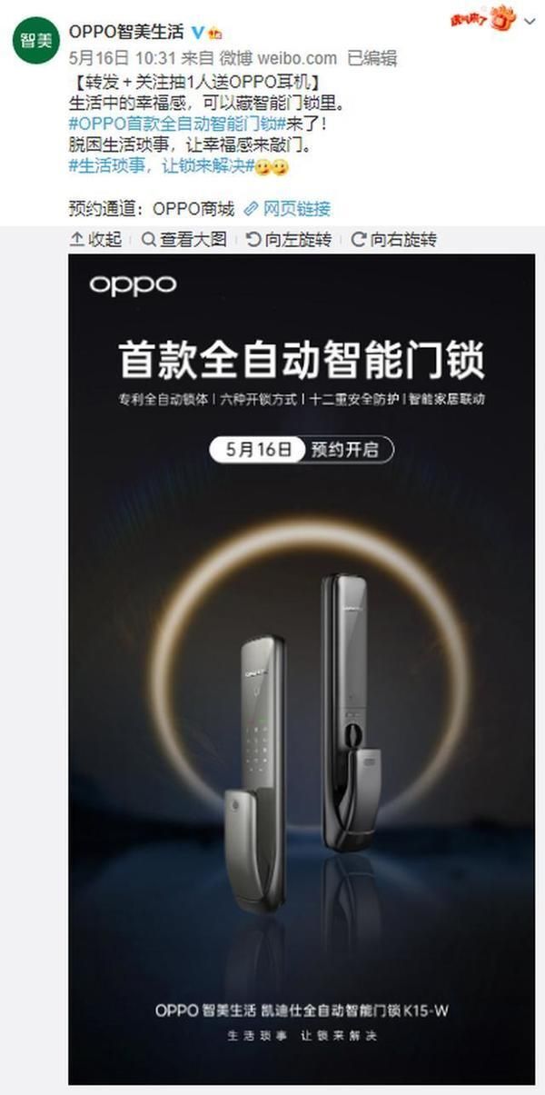 智能快讯|OPPO 首款全自动智能门锁开启预约