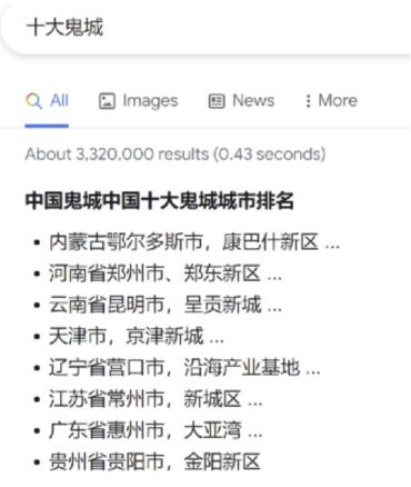 曾经一份知名的中国十大鬼城名单如下: