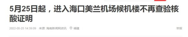 海南美兰机场马上出台新的防疫出行政策,自5月25日起,进入海口美兰机场不再查验核酸阴性证明!
