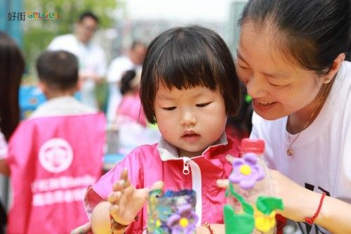 在好街一家亲公益课堂上,爸爸妈妈与孩子一起在老师的指导下把残缺的瓷器修复成原本的模样,一起感受手作美学,体验着古老的技艺魅力。在好街秋收集市,爸爸妈妈陪着小老板叫卖着闲置玩具,那一瞬间、那种热闹,都挂在了孩子们稚嫩的小脸儿上。