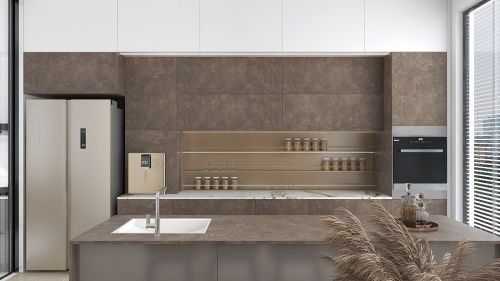 SLENDER诗连达岩板独特的物理性能,可任意加工,在厨房区域使用,告别发霉情况,以超薄3mm的厚度,设计师将城市工业风与钢材、水泥结合不均匀的色彩,结合独特的质感,为家庭营造了沉稳富有张力的工业风,从视觉和根本上双倍放大生活空间。