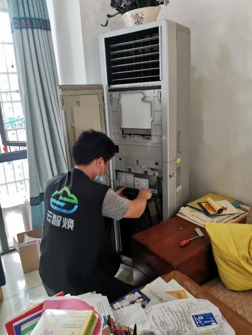 云智焕便民服务走进社区,为住户清洗空调净化空气