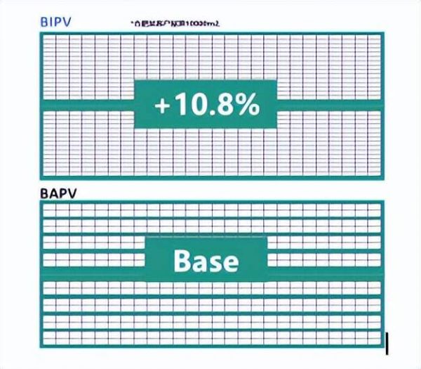 合肥某客户屋顶10000m²屋顶面积进行实际测算分析发现,考虑屋面实际情况和排布,BIPV无需预留运维通道,同等面积下比BAPV装机容量增加10.8%,