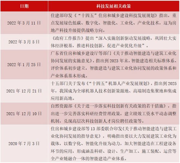 表:科技助力房企发展部分相关政策