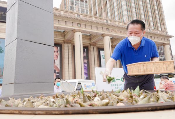 6月3日端午节,值城市复苏后的第一个小长假,环球港将商业“烟火气”与“接地气”巧妙结合,让传统民俗仪式——包粽子、煮粽子在环球港里形成文化新风尚,燃起的灶台烟火气亦象征着环球港商业“烟火气”的重升。当日,全国政协委员、全国工商联常委、月星集团董事局主席丁佐宏带领“店小二”代表在上海环球港南广场举行包粽子活动,大灶台里热气腾腾,现场粽叶阵阵飘香,包好的粽子作为端午之礼首先分发至建设上海、服务上海、坚守上海的来沪人,向其表达“粽”心的感谢,爱心之举彰显了环球港的公益理念,让人宾至如归。
