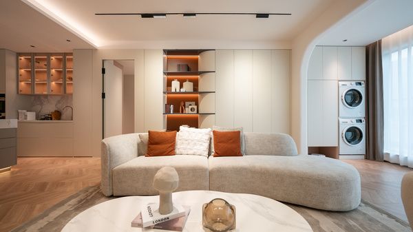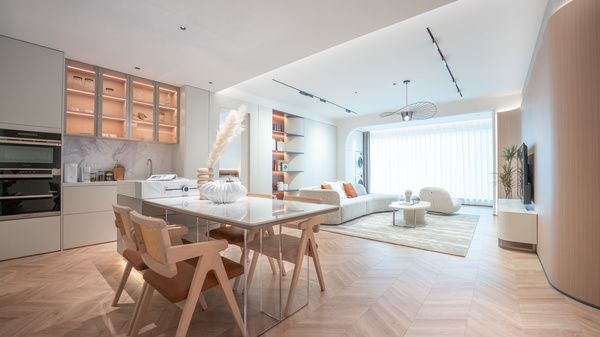 成品家居同样占据了眼球,大量调研过后得出的日常设计,立足于生活日常本身,同时采用白色与长虹波纹等奇妙联动,将空间的柔软化进一步展现,无论是客厅、卧室、或是餐厅,都与空间融合一起,在保持独特的美感下,更形成生活的协奏曲。