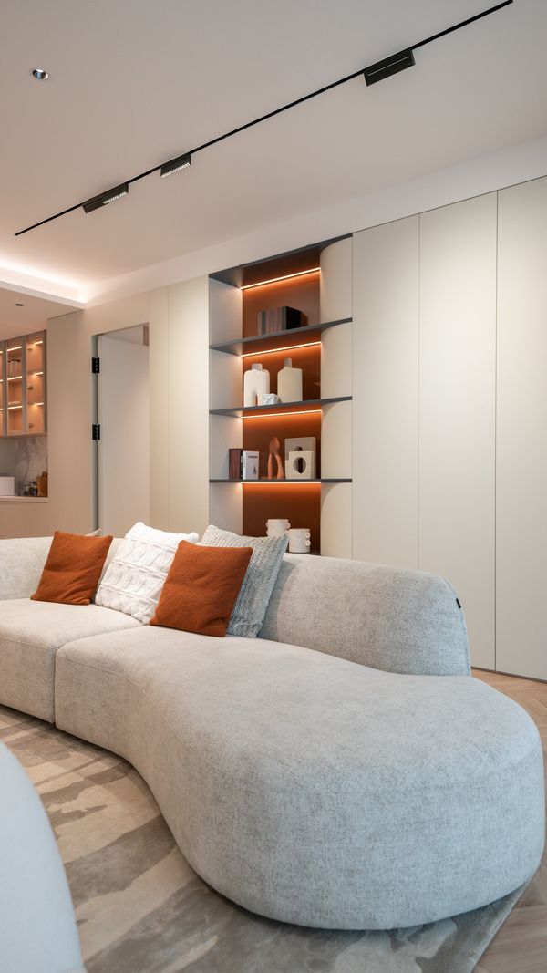 作为划时代的产品设计,全新 10号房间【初见】的改造历程遵循独特设计理念,以“自然中的温暖”为创意灵感,掌上明珠延续了一贯的高级审美意趣,利用简洁的曲线、柔美的弧度、独特而高级的色彩,构成了【初见】温暖的氛围,诸如奶油色与霞光橙的交织,自带慵懒、柔软气息,令居住者保持温暖,仿佛有人张开了双臂,给予居住者温柔的拥抱。最后通过精湛工艺,呈现了一个独特的生活空间。