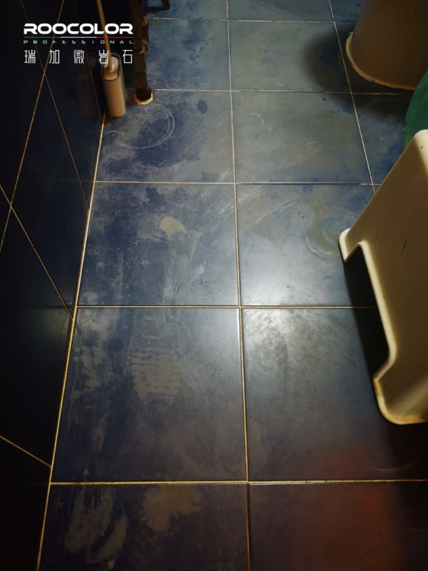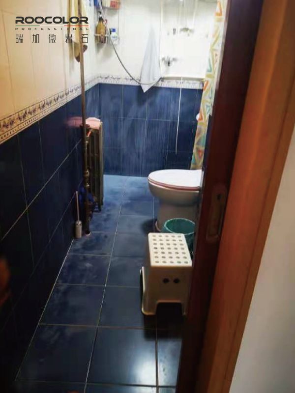 接到任务的瑞加团队,对施工现场进行评估,由于工期紧张决定跳过清拆步骤,直接在瓷砖表面做瑞加微岩石的施工,经过一个周的紧张赶工,在李先生回京前完成施工任务。