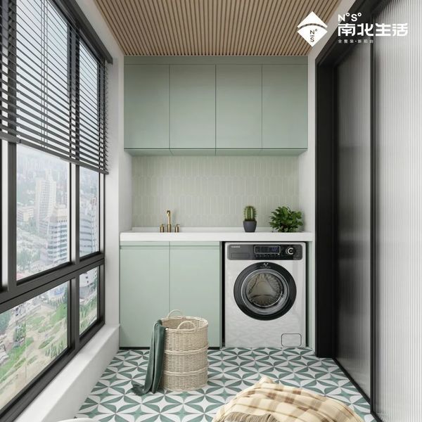 同样墨绿的阳台柜与墙板相呼应,空间的和谐统一让简单的阳台变得特殊起来。这是一方简单的生活阳台,却有着不简单的风格色彩,在这个该吃粽子的日子,阳台给端午再添一抹风采。