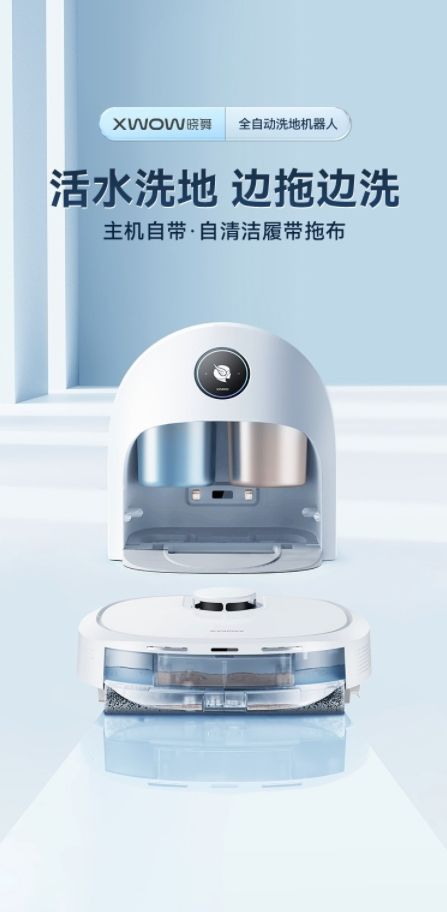 1、“洁癖重度患者”喵星人的【净】能力篇,对应晓舞全自动洗地机器人的创新“活水洗地”方式实时喷水刮污收污,边拖边洗,实时自清洁,拒绝二次污染,自【净】才是真干净!