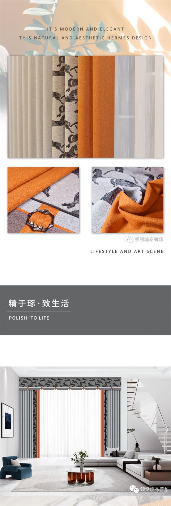 【领绣·菁华】新品窗帘用爱马仕橙+高级灰,精英生活的“新标配”