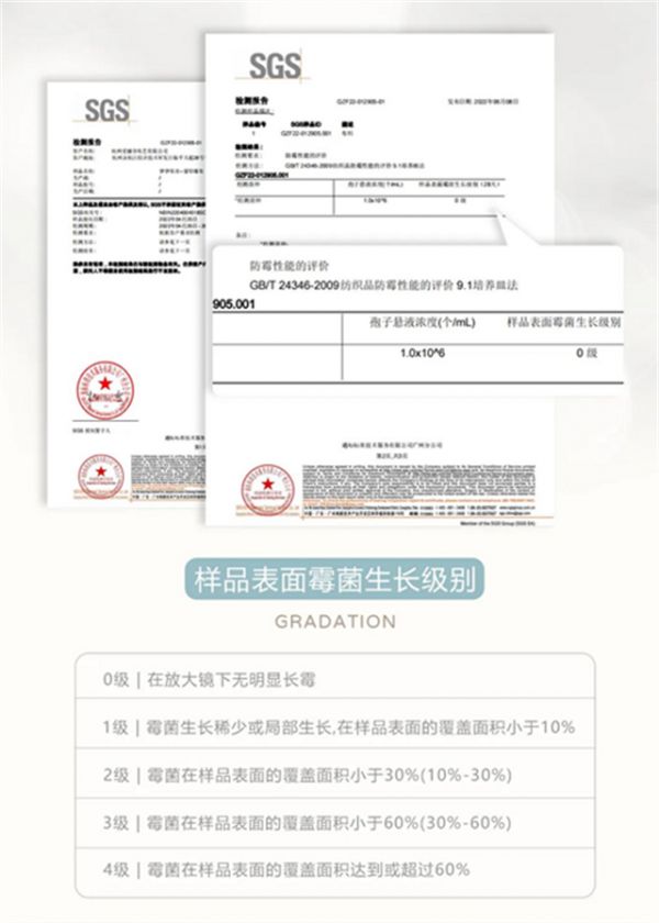 SGS是国际公认的测试、检验和认证机构,是中国境内首家获得中国合格评定国家认可委员会认可的第三方合资检验机构,伊伊布舍送检的《都市生活》系列,超过720小时实验室培菌测试,验证此款窗帘面料的防霉抑菌,达到最高标准0级!伊伊布舍致力于把每个产品都嵌入健康和绿色环保的灵魂,有效保持健康的生活环境,提升家居生活的环保和居住者的生活质量!