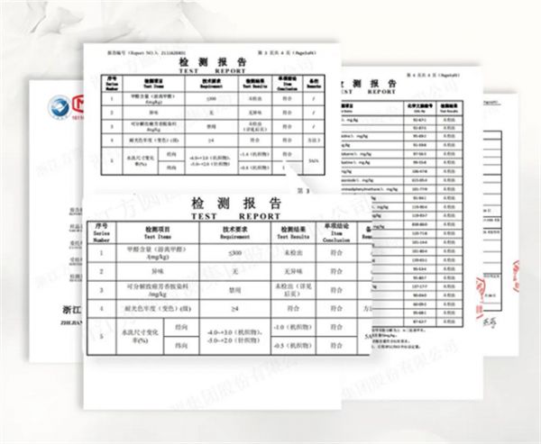 伊伊布舍《都市生活》系列除了SGS检测报告以外,还有国家质检部门颁发的相关的检测报告,甲醛含量、PH值、色牢度、异味检测等均符合国家最高标准,给消费者最严格的安全保护!