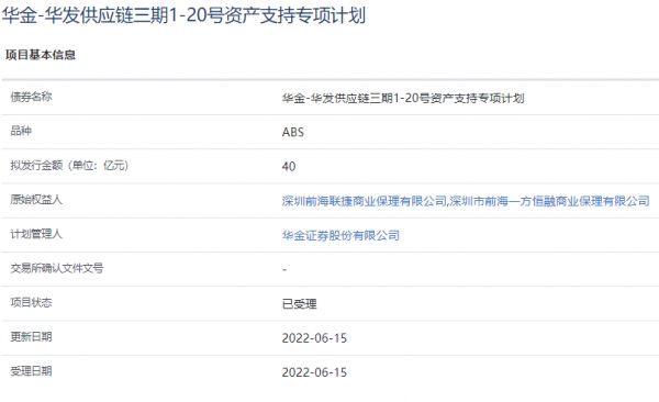 华金-华发供应链三期1-20号40亿元资产支持ABS获上交所受理