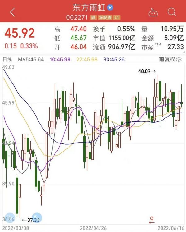 但当我看了东方雨虹的股价后,就理解他们为啥底气这么足。