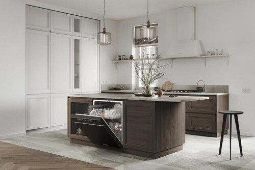 嵌入式洗碗机:需要嵌入到橱柜里,功能更加齐全,容量也更大,这种安装方式看似浪费一部分橱柜空间,实际集洗涤、消毒、储存三大功能,实现一步到位,厨房空间利用率得到提升,厨房更加美观,整体性更佳,但需要提前规划好橱柜尺寸。