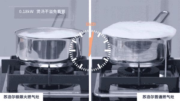 在过去传统的厨房烹饪中,我们煮粥、煲汤时需要人守在灶边,时刻关注,以防粥或者汤溢出,普通燃气灶的最小火常常无法规避这个现象,而苏泊尔极限火系列燃气灶就很好的解决了溢锅这一问题。它的最小火力能达到0.18kW,稳定持久的真文火,既能够做到煲而不沸,煮出汤色清亮,口感酥软不柴的炖品,又能有效防止溢锅,非常符合中式厨房营养煲炖的烹饪习惯。
