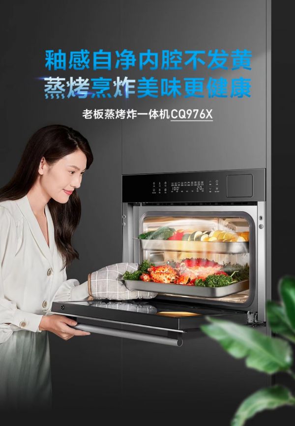 餐后的清洁是很多人在烹饪时最为头痛的一个环节,尤其在使用传统一体机时,往往会面对油污重、干渍顽固一机水垢难除等等困境。为了让更多人轻松进行餐后清洁,老板电器CQ976蒸烤炸一体机采用了釉感自净内胆,不仅一抹即净,而且久用不发黄。同时,还有三重自清洁系统,让污渍轻松无迹可寻,也让清洁环节更加轻松省心。