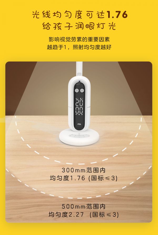 佛山照明一直强调光线的舒适性,通过光学透镜的原理实现光线的均匀度。而市面上不少企业的台灯产品的均匀度并不好,仅仅是为了满足标准而加强中间光剑的亮度,忽略了使用者的舒适度。台灯照度均匀度越好,孩子眼睛就越不费力,长时间赶作业就不易眼疲劳,从而大大降低近视的可能。