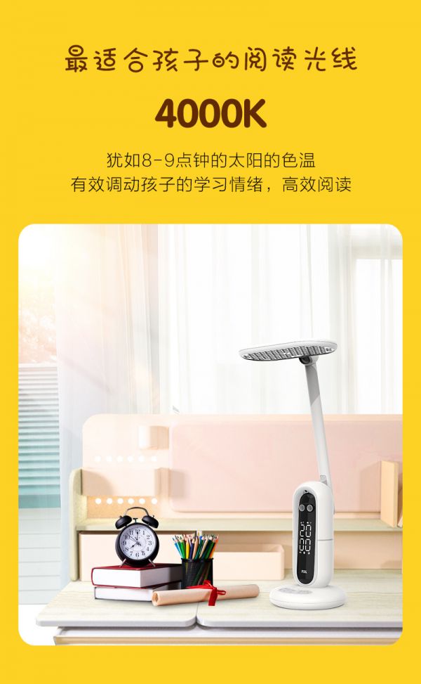 值得注意的是,为提高使用者的用眼舒适度,智能学习助手P6还仿自然光,将色温设置为4000k,如早晨太阳的光线,柔和又舒适。