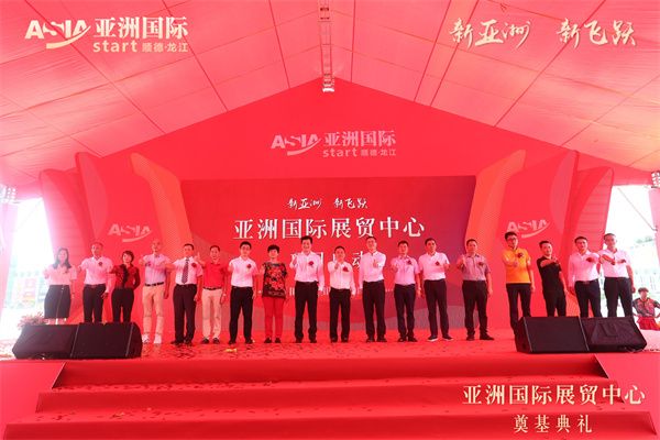 2022 年 6 月 22 日上午,亚洲国际展贸中心奠基典礼现场红旗飘扬、人头攒动,现场气氛热闹纷繁。亚洲国际展贸中心奠基典礼在这里隆重举行,龙江镇委镇政府领导、亚洲国际领导及企业员工、金融单位与合作单位、家具商协会领导、家具业代表、媒体朋友共同参加了本次奠基仪式。