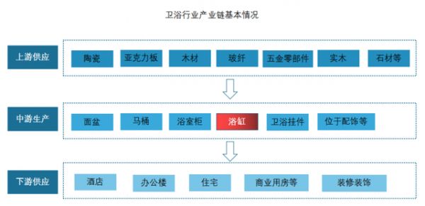 缸属于卫浴产业,是一种水管装置,供沐浴或淋浴之用,通常装置在家居浴室内,主要应用在酒店、办公楼、住宅等房地产业以及装修装饰行业。