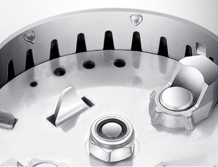 解决办法: 先拧松机器上部三个顶紧螺丝,然后轻微转动投料口,再均匀旋紧三个紧顶螺丝。