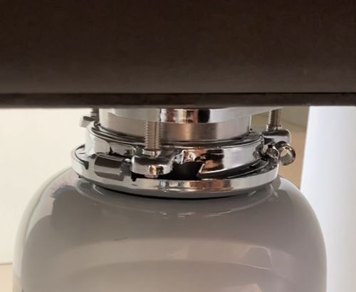 分析原因①:机器与水槽连接倾斜,顶力不均?可能是三点卡口锁紧环没有锁紧,机器可以上下轻微移动