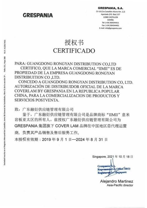 ▲西班牙GRESPANIA授权书