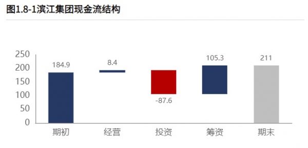 滨江集团2021年经营活动现金净流入8.39亿元,投资活动净流出87.60亿元,筹资活动净流入105.31亿元,本年度共实现26.05亿元的现金净流入。