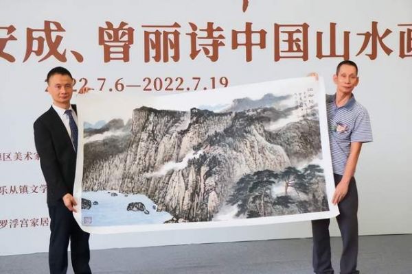 为表达对罗浮宫展藏馆和乐从镇人民政府大力支持与配合的感谢,三位老师准备了国画作品《江山盛景图》和《锦绣云山》分别赠予乐从镇人民政府和罗浮宫家居集团。