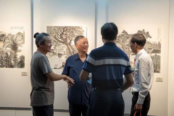 开幕仪式结束后,现场来宾纷纷移步至罗浮宫展藏馆内观看展出的作品,展览展出的作品近200件,分四部分:《外师造化》为现场的写生作品;《中得心源》为创作的作品;《故乡寻梦》是怀旧作品;《域外掠影》是记写境外旅游的观感,让到场来宾大呼过瘾,三位老师亦在现场讲解画作立意、技法风格及希望通过画作传达出的理念,现场讲解精彩纷呈,让来宾们耳目一新。